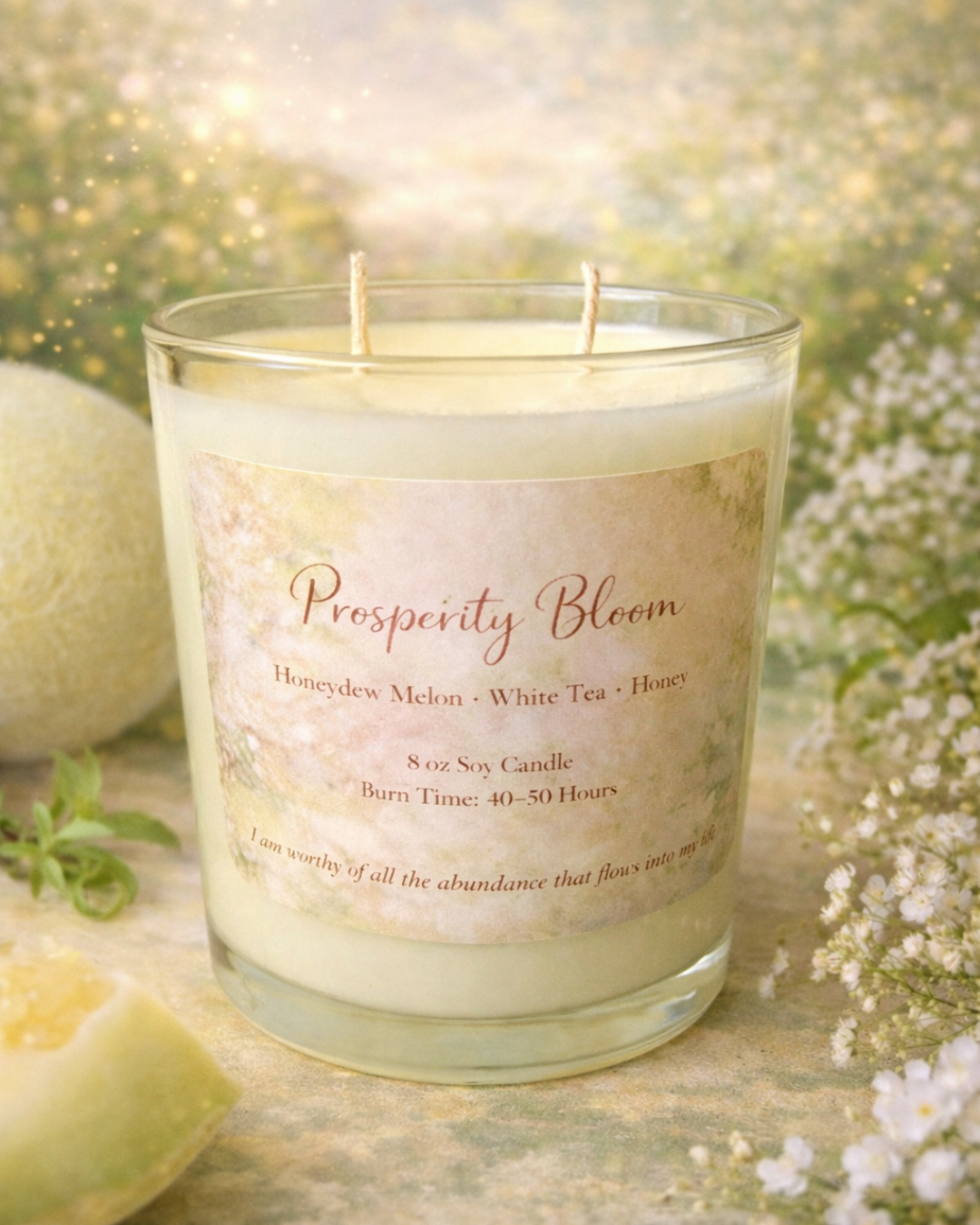 This scent opens with the airy elegance of white tea, blends into the juicy brightness of honeydew melon, and settles into the warm sweetness of honey — creating a fragrance that feels light, uplifting, and quietly luxurious. It’s the kind of scent that transforms your home into a calm, intentional space where possibility feels closer and everything slows down just enough